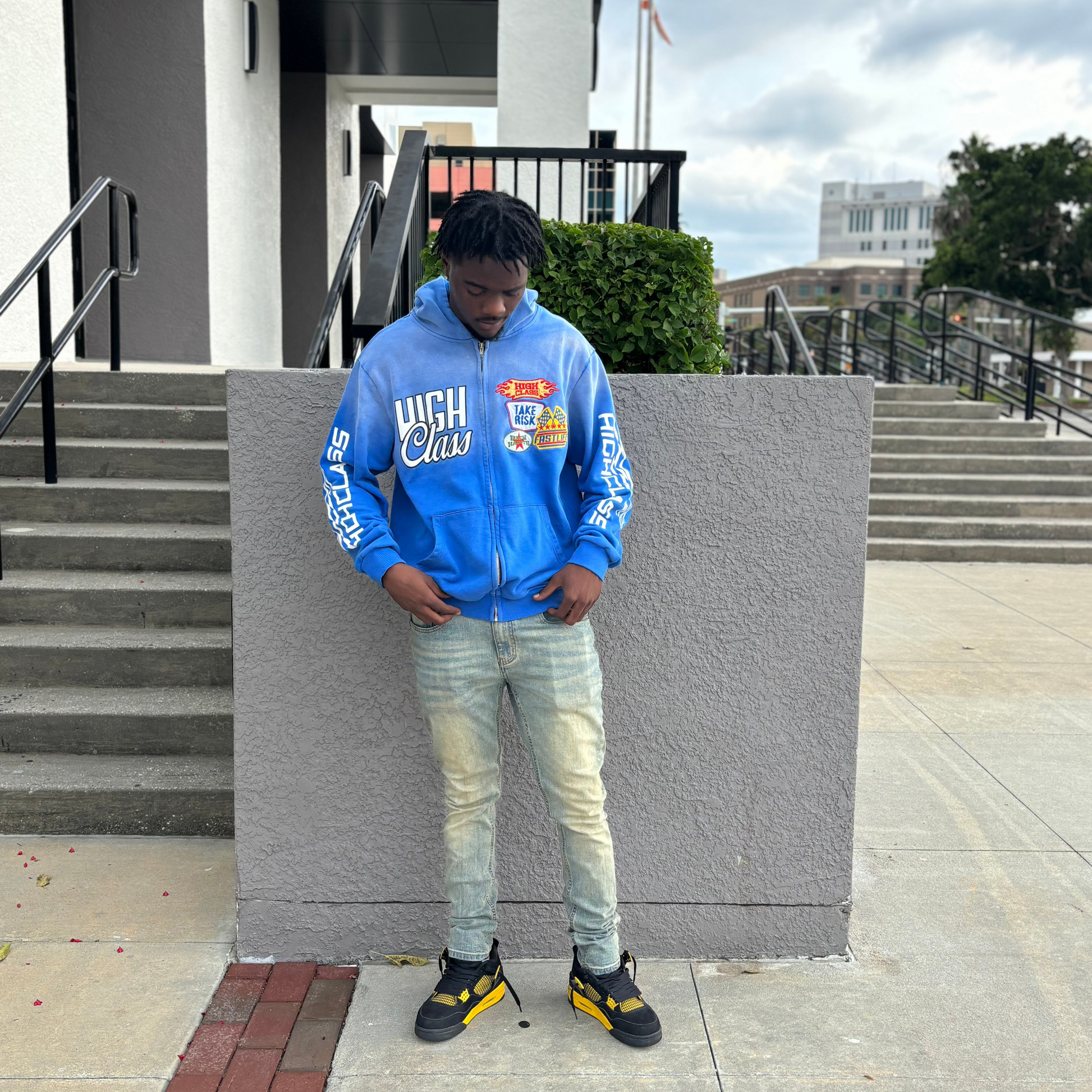 Blue Patch Work Zip-Up